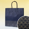 高級感のある和をイメージしたデザインの、和モダン手提袋です。 未晒クラフトに紺1色の落ち着いた和風デザインになっています。 ※こちらの商品は、不良品以外の返品・お取替えはお受けできませんのでご了承ください。