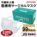 | 製品名 | 【JIS規格適合】不織布3層 医療用サージカルマスク ホワイト(BFE・VFE・PFE99%以上)(2,000枚入) |