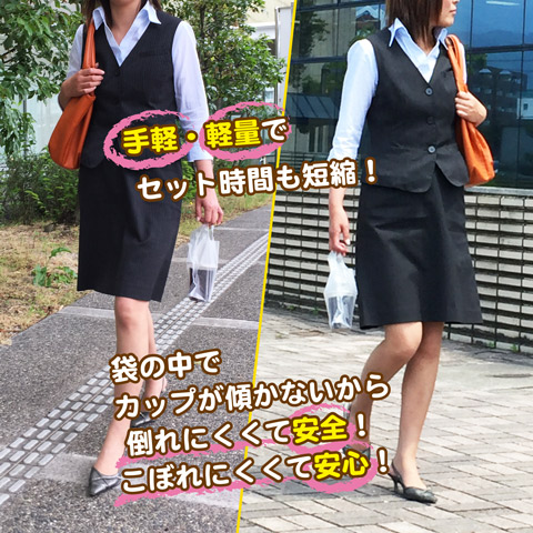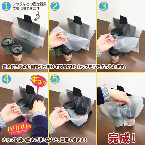 ●時間短縮 カップを袋に入れる時間を大幅に短縮し、レジ前でお客様をお待たせしません!